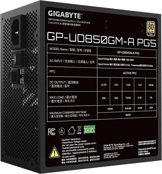 850W Capactiy with Single +12V Rail 80 Plus Gold Certified ATX 3.1 and PCIe Gen 5.0 Ready ATX Form Factor Fully Modular Design Japanese Capacitors 120mm Hydraulic Bearing Fan OVP/OPP/SCP/UVP/OCP/OTP Protection Made in Taiwan