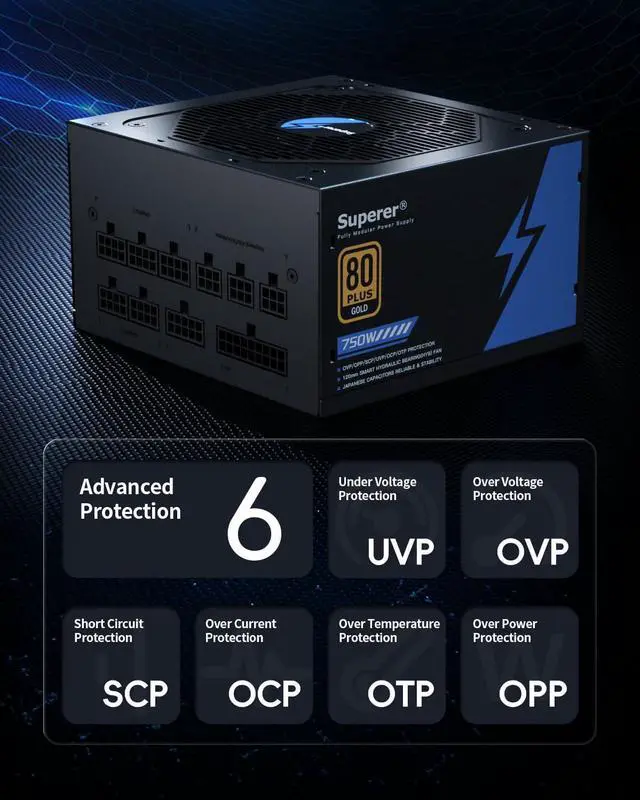 80 PLUS Gold Efficiency: Superior energy savings with over 91% efficiency at typical loads, reducing heat and enhancing system performance.