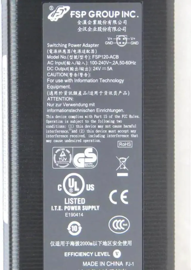 • FSP FSP120-ACB 24V 5A 120W 4PIN AC Adapter For Pioneer POS STEALTHTOUCH-M5 0227B24120 ADP-120TB B Power Supply Charger