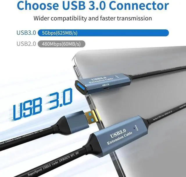 This set of high-quality USB extension cables comes in 16.4/33/50/65/82/100FT length options so you can choose the right length for your needs.