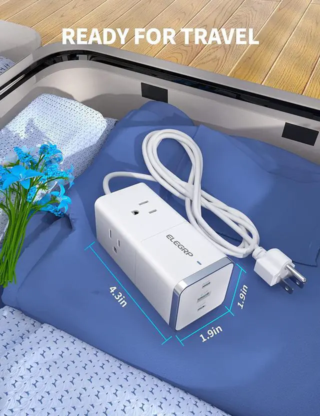 6-in-1 Power Strip with USB With three AC outlets, two PD USB-C ports and 1 USB-A ports. The USB-C port supports single port 65W Max and USB-A port supports 18W QC fast charging. ELEGRP power strip enables intelligently deliver power for up to 6 devices simultaneously.