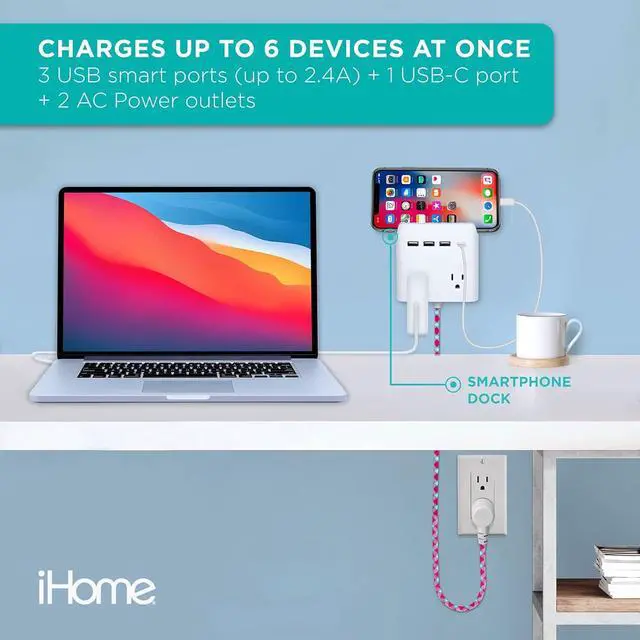 PLENTY OF OUTLETS FOR ALL YOUR NEEDS: iHomes multi plug outlet allows you to charge up to 6 devices, all at once. A 6-foot extra-long power cord is available to use especially when your power outlet is hard to access or out of reach. The slim subtle design of the charger seamlessly blends with the rest of your home and fits behind furniture, desks and even in the narrowest places.