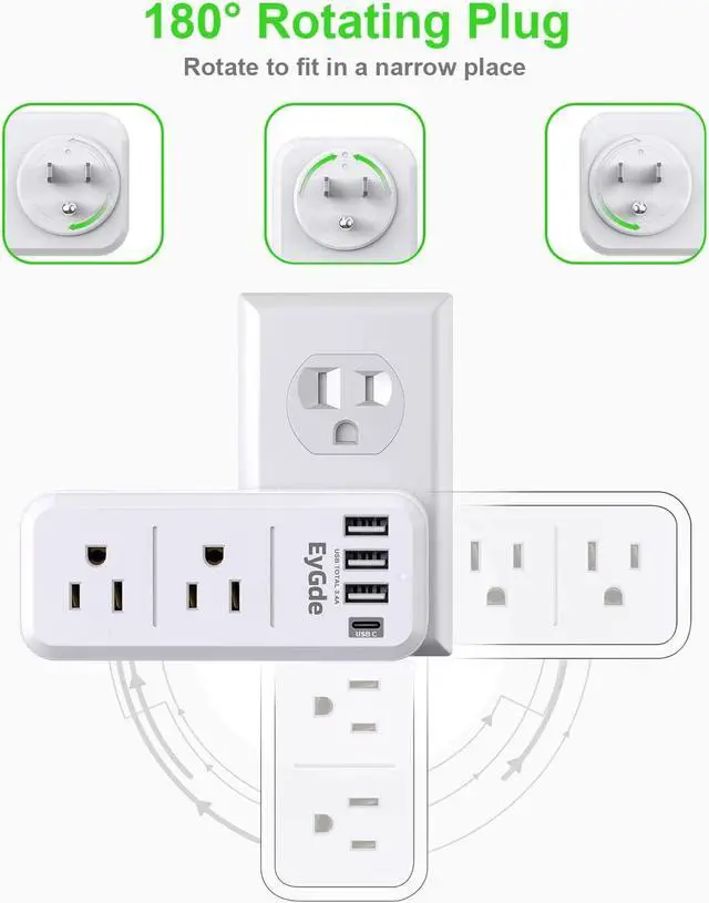 180° Rotating Outlet Extender with USBThe swivel outlet expander with usb ports is able to rotate 180°, this allows you the flexibility to adjust the outlet splitter and put it in the most convenient and appropriate position for your setup.