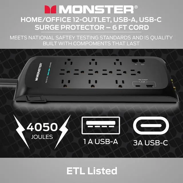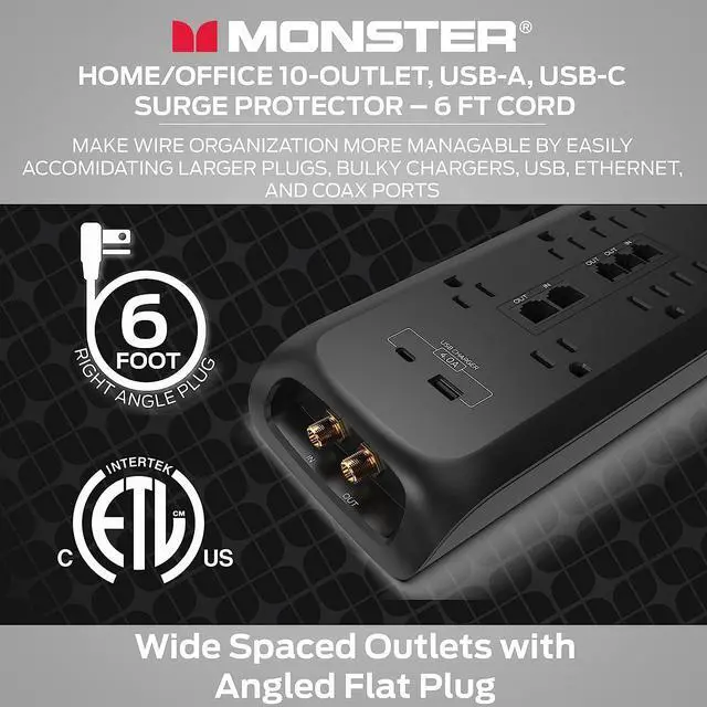 FIREPROOF MOV & DUAL MODE TECHNOLOGY: Monsters flexible power strip surge protector automatically protects devices from power overloads while also preventing MOVs from igniting, thus saving your pricey electronics from being damaged or ruined