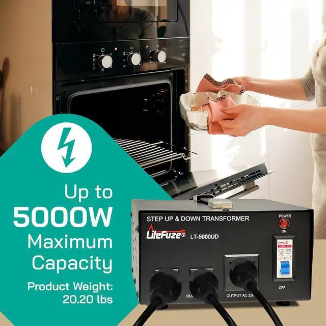 HEAVY DUTY STEP UP/DOWN OPERATION - LiteFuze step up transformer converts 110/117/120V AC to 220/230/240V AC OR it step down transformer 220v to 110v converts 220/230/240V AC to 110/117/120V AC. Set the input voltage switch in the back based on the country' s voltage and connect your appliance to the appropriate outlet in the front. Note that this 5000W transformer only converts the voltage and the output Hz (frequency) remains the same as the input.