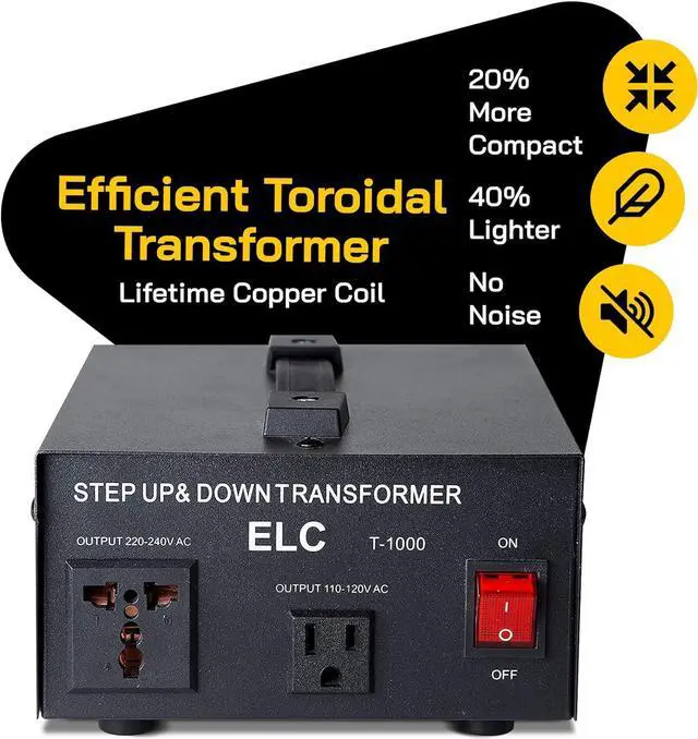This voltage converter transformer has new efficient toroidal transformer technology to ensure efficiency. It is 20% lighter than traditional transformers.