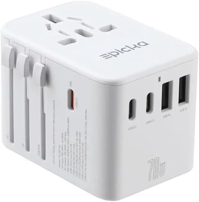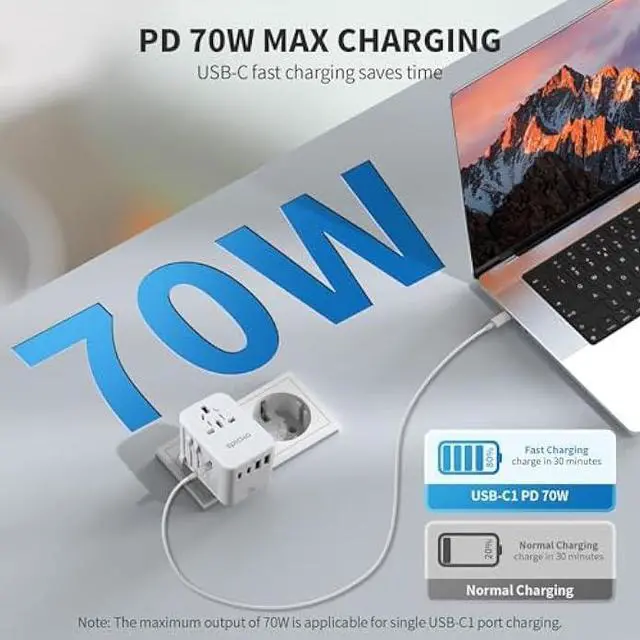 6 IN 1 WITH 70W FAST CHARGING - Charge multiple USB devices simultaneously at high speed through 3 USB-C port (3A) and 2 USB-A ports ( 2.4A ). The USB-C1 port supports PD 3.0 and offer up to 70W fast charging. Ideal for tablet, USB powered laptop, iPhone, Samsung and other Android phones, smart watch and fitness tracker, tablet, power bank, camera, handheld game console, headsets, and everything else that is charged through a USB port.