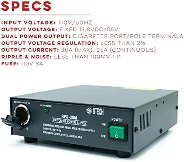 CONVERTS AC TO DC: Reliable 30 Amp power supply for CB, Ham, GMRS, LMR Radios, and all 13.8V DC Devices