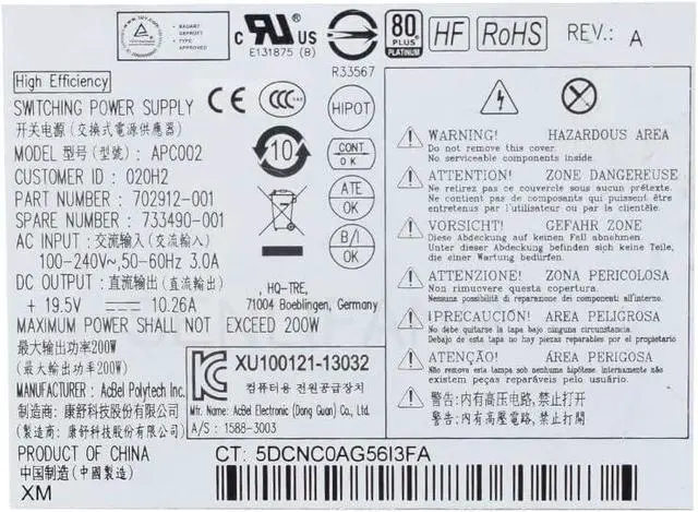 Model Number:APC002 702912-001 733490-001