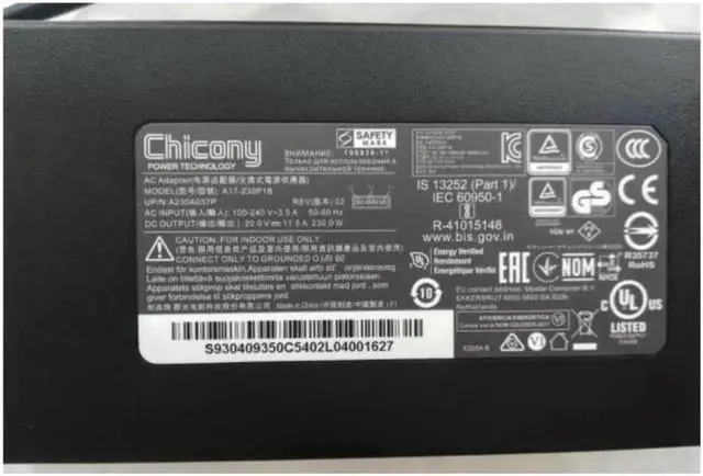 Part Number: Chicony A17-230P1B A230A037p A230A029P A17-230P1A 957-1541XP-108 MSI S93-0409380-D04.