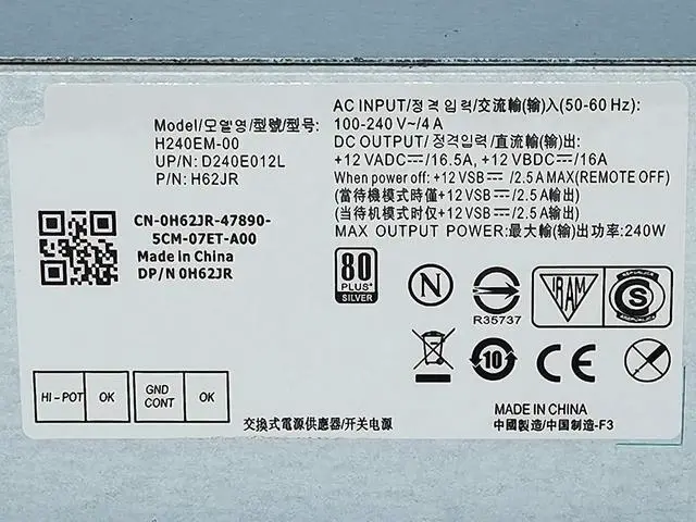 Vszerda 240W Power Supply for Dell Optiplex 3040 3046 3250 3650 3656 5040 7040(SFF) H240EM-00 B240NM-00 AC240EM-00 L240AM-00 HU240AM-00,P/N: THRJK 4GTN5 4R1KT D7GX8 H62JR 3RK5T 6WX7D 0M1C3 J1J7