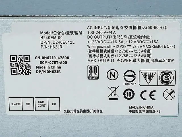 100-127V ~/7.0A, 200-240V~/3.5A;Max Output Power:240W
