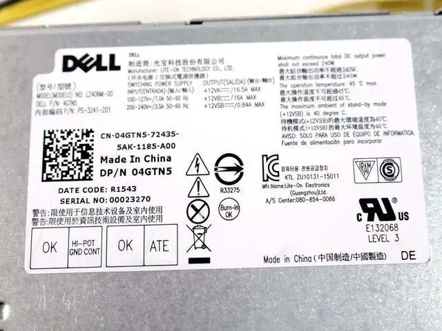 H62JR 240W New Power Supply for D.ell Optiplex 3040 3650 3656 5040 7040 (SFF) B240NM-00 HU240AM-00 AC240EM-00 P/N: THRJK 4GTN5 4R1KT D7GX8 HGRMH 2P1RD 3RK5T 6WX7D 0M1C3 J1J77 RKTF0 20WFG RWMNY