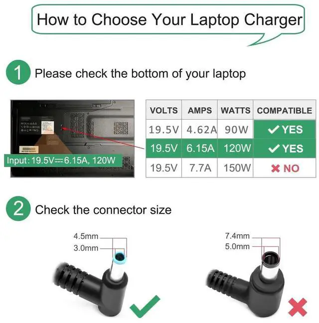 Connector Size: 4.5mm*3.0mm. Not 7.4mm*5.0mm. Please check your Laptop or HP Docks to confirm the charging port size.