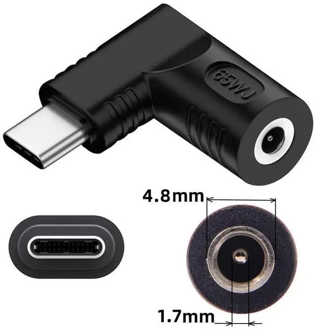 Vszerda Adapter DC 20V Jack 4.8x1.7mm Input to USB-C Type-C Output 90 Degree Right Angled Power Plug Charge Adapter 65W