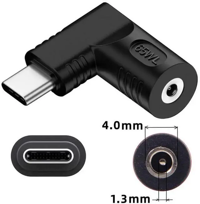 Vszerda Adapter DC 20V Jack 4.0x1.3mm Input to USB-C Type-C Output 90 Degree Right Angled Power Plug Charge Adapter 65W