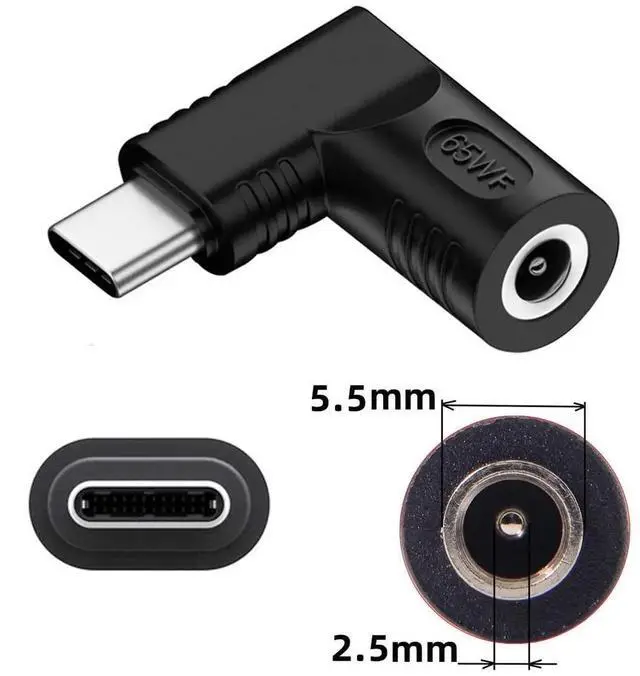 Vszerda Adapter DC 20V Jack 5.5x2.5mm Input to USB-C Type-C Output 90 Degree Right Angled Power Plug Charge Adapter 65W