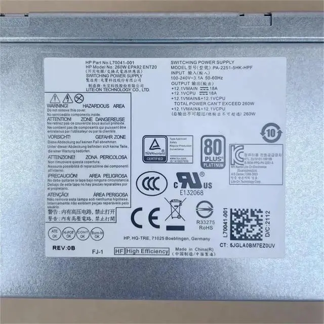 L70041-001 for ProDesk 600 G6 400 G7 480 G7 MT 260W Power Supply PCK018 PA-2251-5HK-HPF