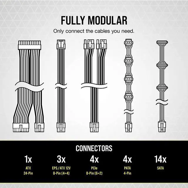 Triple EPS12V connectors for full compatibility with modern graphics cards and motherboards.