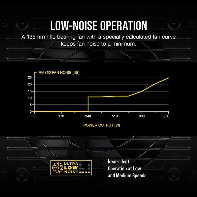 Zero RPM fan mode: at low and medium loads The cooling fan switches off entirely for near-silent operation.