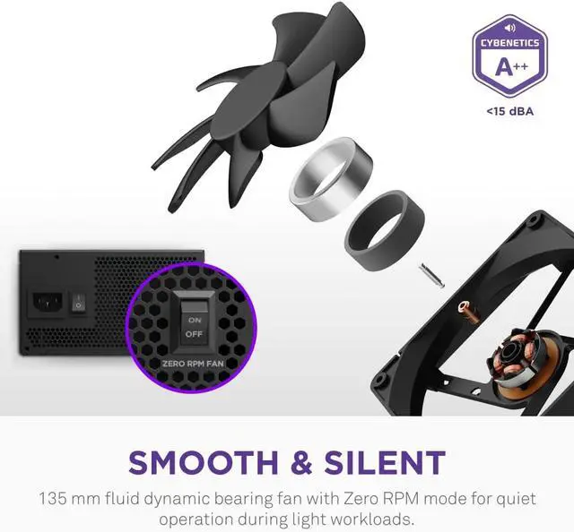WHISPER-QUIET OPERATION Cybenetics noise certified for near-silent performance: A++ for C750 and C850 (<15 dBA), A+ for C1000 (1520 dBA).