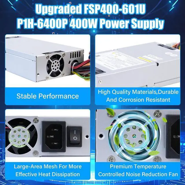 Compatible ModelsP1H-6400P FSP400-601U 400W Power Supply PSU Compatible with Emacs 1U -5V FSP400-601U Switching Power Supply.