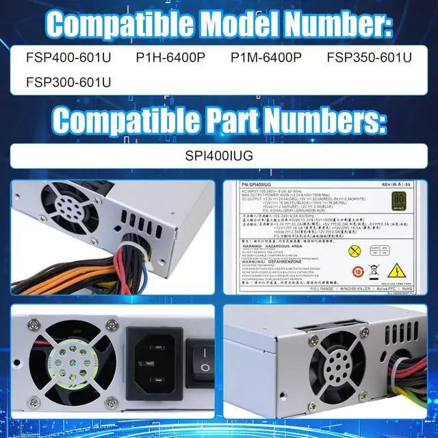Compatible Model NumberFSP400-601U P1H-6400P PSU 400W Power Supply repalces FSP400-601U P1H-6400P P1M-6400P FSP350-601U FSP300-601U. Note: Please carefully check whether the power supply is suitable before purchasing, so as not to bring you an unpleasant shopping experience.