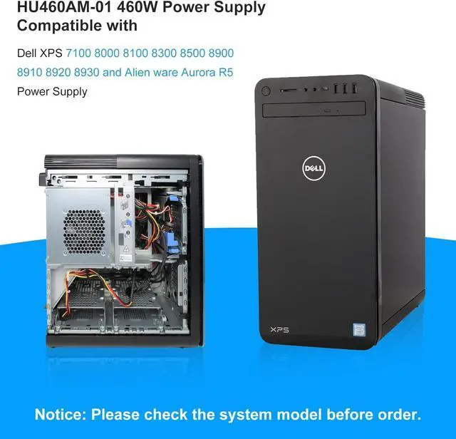 Compatible ModelsHU460AM-01 460W Power Supply PSU Compatible with Dell XPS 7100 8000 8100 8300 8500 8900 8910 8920 8930 power supply,and Alien ware Aurora R5 power supply.