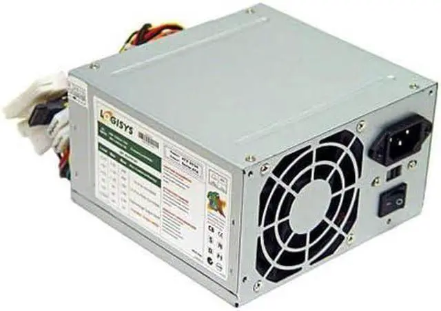 LOGISYS PS480D 480w Power Supply 480W ATX Power Supply ATX12V SATA Ready ATX PC Power Supply (20/24 Pin) Features: High Efficiency. Low Noise & Ripple. Over Voltage Protection. Short Circuit Protection. ? Built-in EMI Filter. Insulation Resistance 100M min. Complies with FCC part 15J class B 115VAC operation and CISPR 22 230 VAC operation. Meet UL 1950. CSA 22.2 LEVEL 3 Requirement? 100% Burn-in test / Vibration test / Hi-pot test / Leakage current test. MTBF above 100.000 Hrsat 25 °C Technical Information: 1x: 20Pin ATX mainboard connector w/ extra 4 Pin for 24 Pin ATX mainboard 4x: 4Pin Standard drive connectors for HDD and CD-rom CD-RW 1x: 4Pin 3.5" FDD or ZIP connectors 1x: 4Pin +12V Power connector 1x: Serial ATA connector Dimensions: 6" L x 5.5" W x 3.25" H