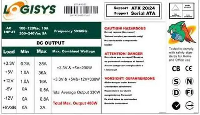 CSA 22.2 Level 3 Requirement 100% Hi-pot & Function (Chroma)tested 100% & Burn-in under high Ambient Temperature Complies with FCC part 15J class B 115Vac Operation and CISPR22 230Vac Operation Approvals: CB, CE, CSA, FCC, cUL,TUV MTBF: >100,000 Hours Input Details Input Voltage:100-120V/ 200-240V Input Frequency Range: 50/60 Hz Input Current: 10A/ 5A Output Details Output Voltage: +3.3V@28A, +5V@36A, +12V@16A,