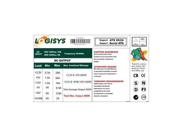Special features: On/Power Switch, High Efficiency, Low Noise and Ripple Fan, Energy Star Efficiency, Over Power protection, Short Circuit Protection, Over Voltage protection, Meet UL 1950