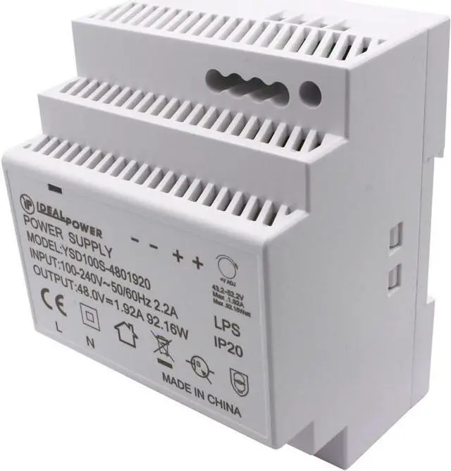Cost-effective, energy efficient solution for standard DIN-rail mounting, offering a high level of stability and immunity to noise. Manufacturer: Brainboxes Limited. Manufacturer Part Number: PW-301. Brand Name: Brainboxes. Product Name: 96W Single Output Industrial DIN Power Supply. Packaged Quantity: 1. Product Type: Power Supply. [Technical Information] Efficiency: 85%. [Power Description] Output Voltage: 48 V. Output Power: 96 W. [Physical Characteristics] Form Factor: DIN Rail. Height: 3.6". Width: 3.5". Depth: 2.4". Weight (Approximate): 8.47 oz. [Miscellaneous] Environmentally Friendly: Yes. Environmental Certification: RoHS. WEEE. Country of Origin: China. [Warranty] Limited Warranty: Lifetime.