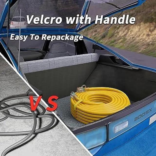 [Multipurpose] All purpose 50 foot extension cord 14AWG for indoor and outdoor use. This three prong outdoor extension cord 50 ft waterproof is ideal for landscaping, gardening and powering appliances such as weed wacker, bush trimmer, leaf blower, electric lawn mower and Christmas string lights. Each outdoor extension cord has velcro packing and is easy to repack and recycle after use.