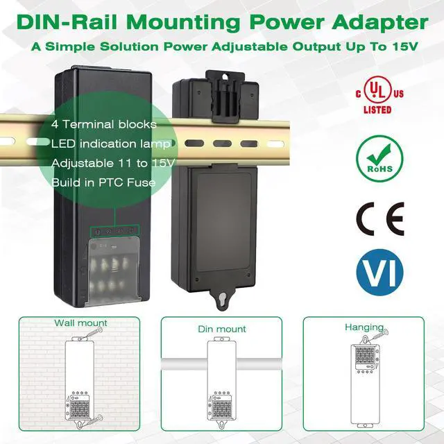 Package include: 1 x 12V 5A 4 Channels Din-Rail Mounting Power Adapter, 1 x US Plug Cable, An Instruction Manual