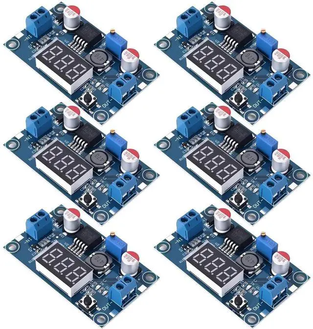 LM2596 Adjustable DC-DC Step-Down Buck Converter Module with LED Voltmeter Display, Voltage Regulator 4.0-40V Input to 1.25-37V Output Power Supply Module (Pack of 6)