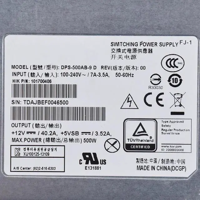 For Delta Electronics DPS-500AB-9 A D E Server - Power Supply Max 500W