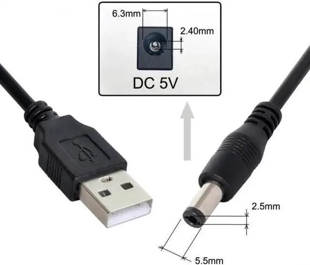 • USB 2.0 A Type Male to 5.5 x 2.5mm DC 5V Power Plug Barrel Connector Charge Cable