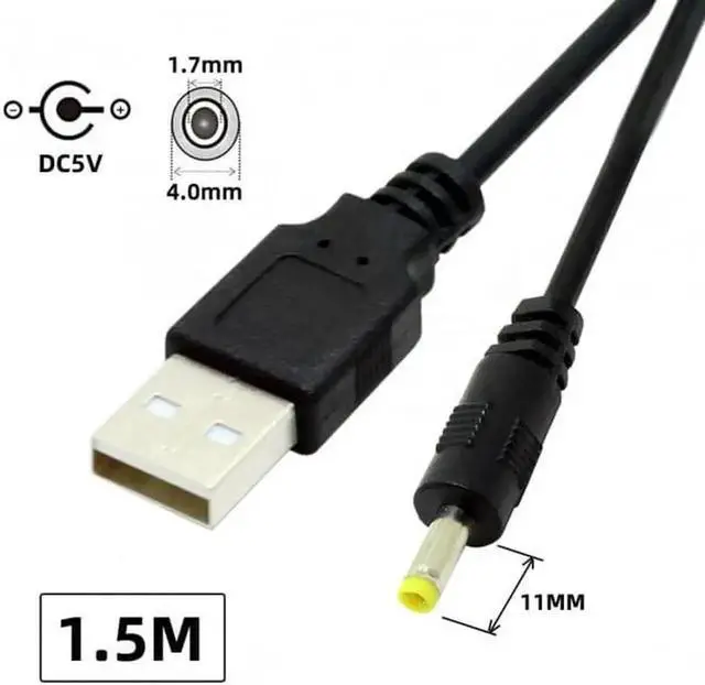 1. 2pcs/lot USB 2.0 Male Type-A to 5V DC 4.0x1.7mm DC Power Round Plug Cable 150cm 24AWG