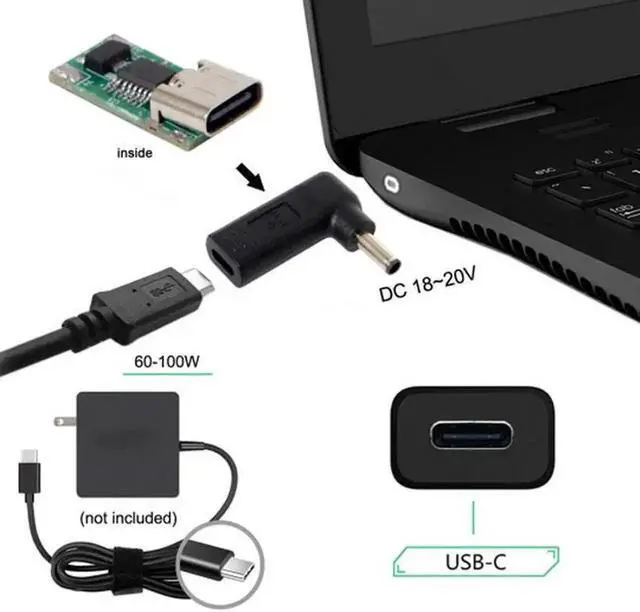 Aomoproing USB 3.1 Type C USB-C to DC 4.5*3.0mm Dell Adapter PD Emulator Trigger 90 Degree Angled