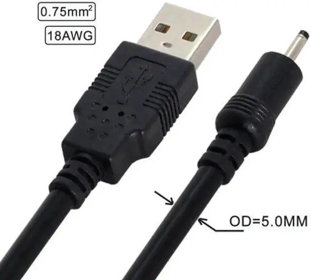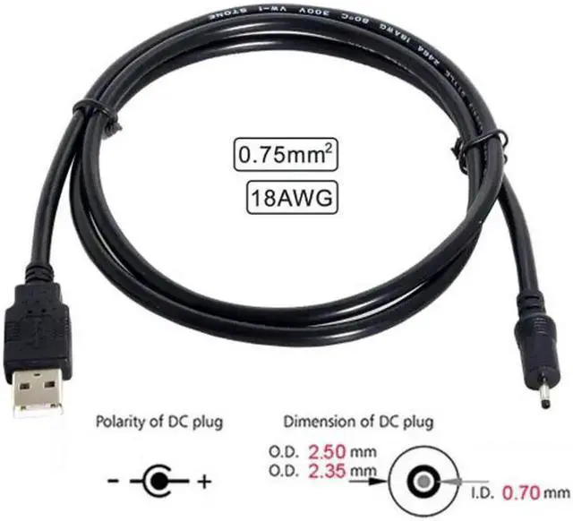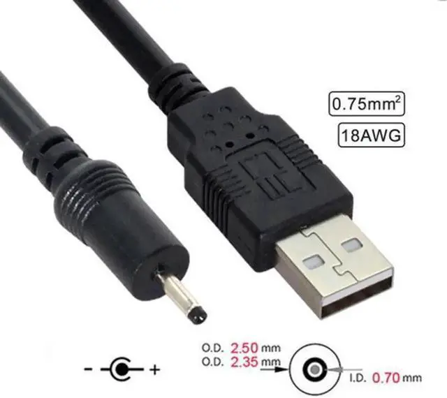 Aomoproing 18AWG 0.75mm*2 USB 2.0 A Type Male to DC 2.50mm 2.35mm 0.7mm Power Plug 5V Cable 100cm