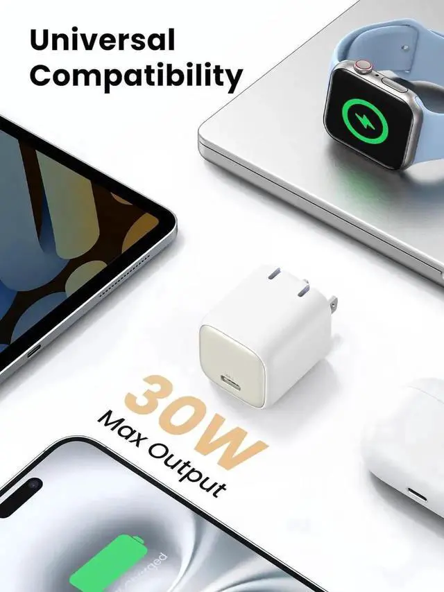 Aomoproing UGREEN 30W USB C Charger for iPhone 17, Nexode Foldable GaN PPS Compact Fast Wall Charger Block, USB-C Power Adapter for iPhone 17/16/15/14, Galaxy S25/S24/S23/S22 White