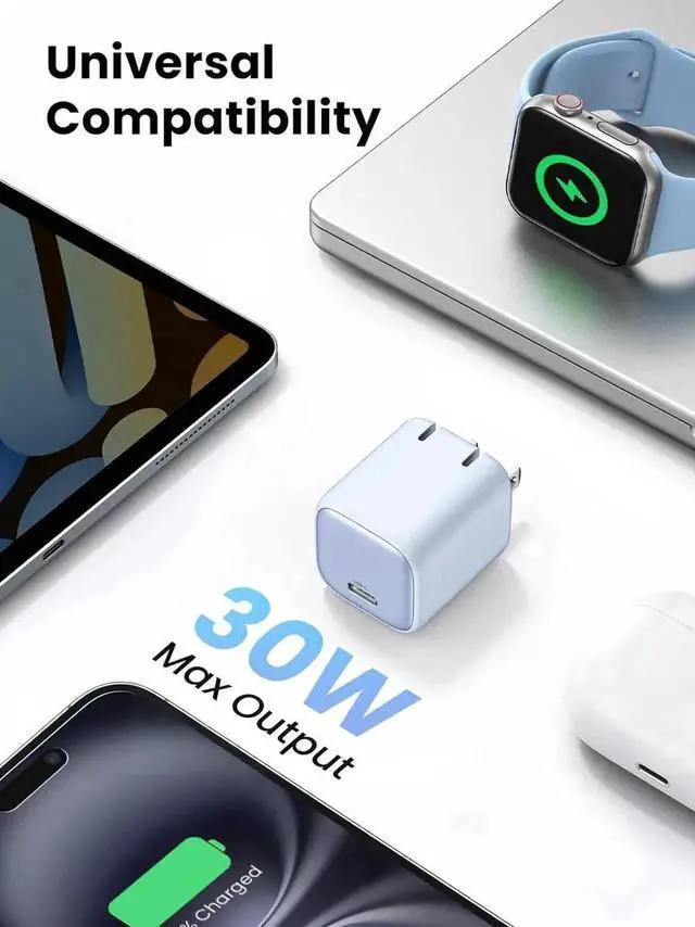 Aomoproing UGREEN 30W USB C Charger for iPhone 17, Nexode Foldable GaN PPS Compact Fast Wall Charger Block, USB-C Power Adapter for iPhone 17/16/15/14, Galaxy S25/S24/S23/S22 blue