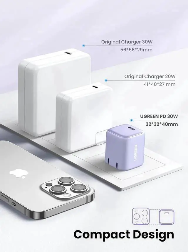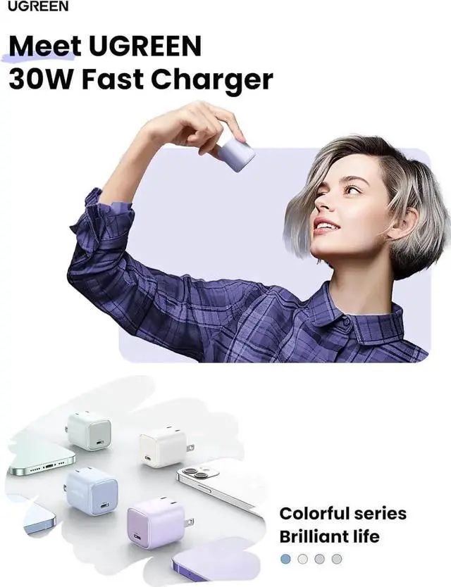 Aomoproing UGREEN 30W USB C Charger for iPhone 17, Nexode Foldable GaN PPS Compact Fast Wall Charger Block, USB-C Power Adapter for iPhone 17/16/15/14, Galaxy S25/S24/S23/S22 Purple