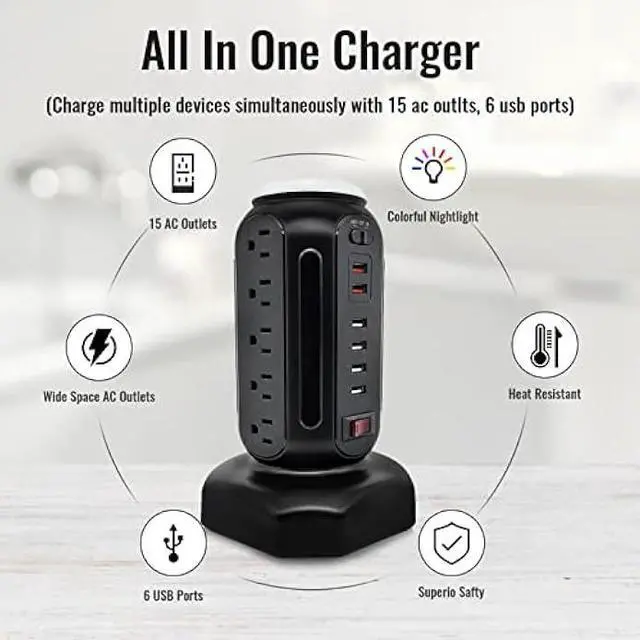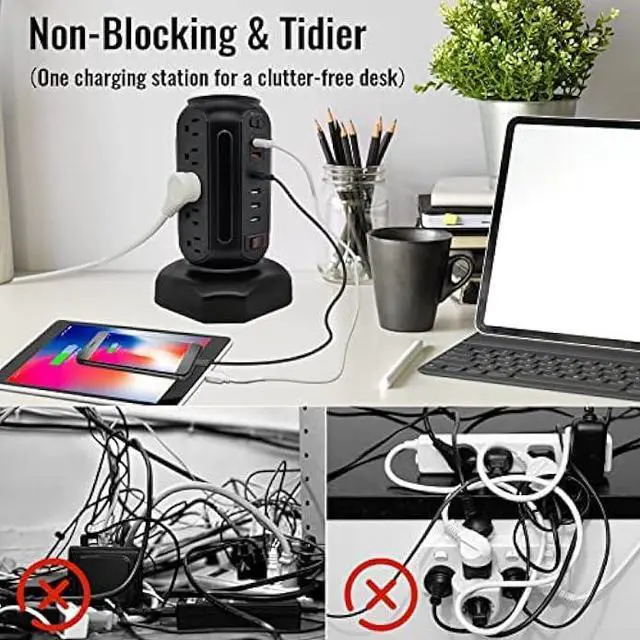 Power Strip Tower: Power all the device in your room with a single compact power strip surge protector. This reputable extension cord offers 15 AC outlets with surge protector and 6 fasting charging USB ports for charging your computer, laptop, phone, camera, and more. One charging station for a clutter-free desk. It definitely a nice desk accessories & workspace organizers in your room.