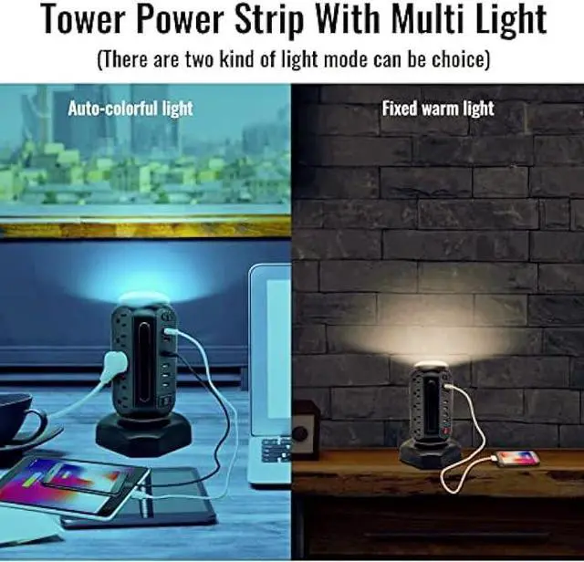 RGB Light Controller usb Power Strip: There are 2 kind of mode light can be choice. One is the auto-change colorful light, the other is warm light. The light of power strip with usb ports can be turned off if you dont need. Ready for a cool desktop charging station with colorful light for your home.