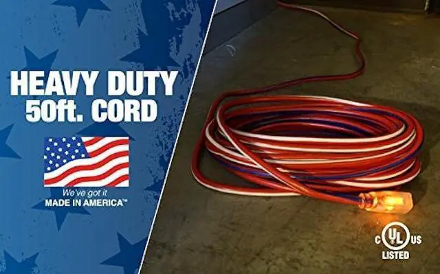 12 GAUGE HEAVY DUTY wire; 50 footLIGHTED END indicates power is onUL LISTED and CUL LISTED