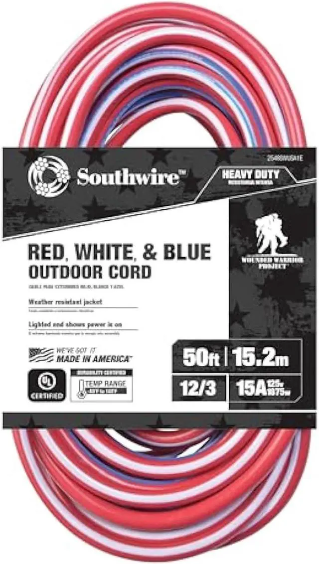 MADE IN AMERICA: Display AMERICAÄôS COLORS on the jobsite with this patriotic striped contractor grade extension cord