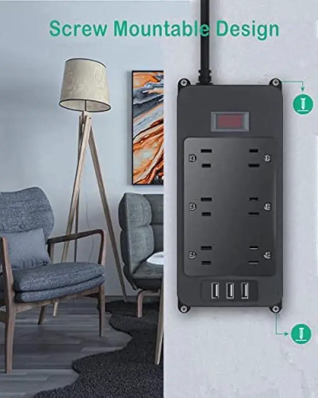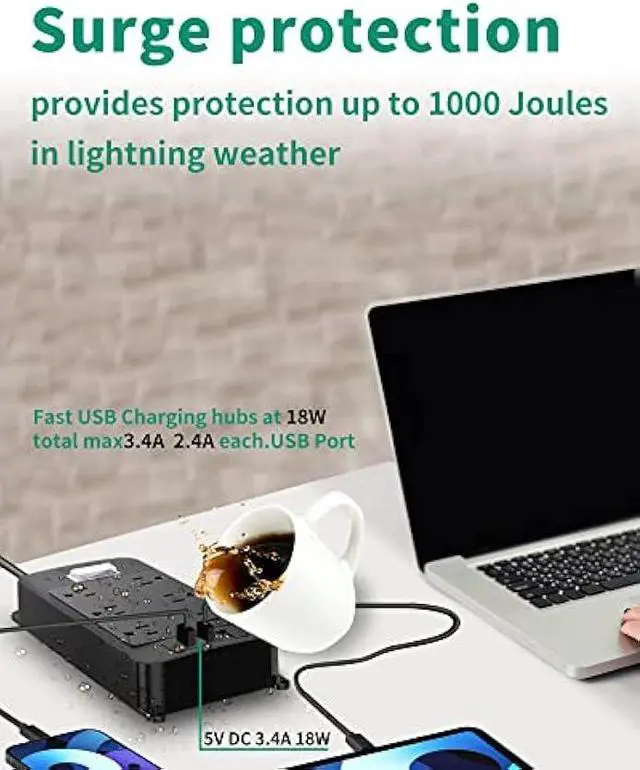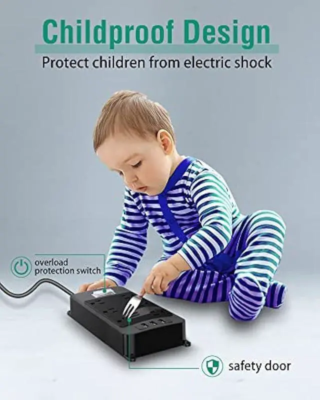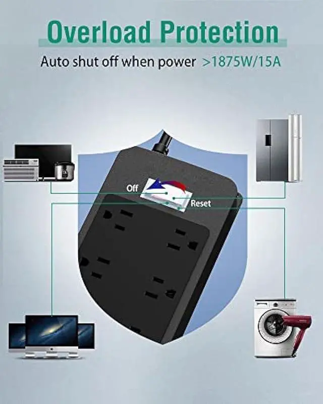 Multi Safety Protection- The power strip has overload protection, short-circuit protection, over current protection, over-voltage protection and overheating protection. The surge protector with overload protection protects your electrical appliances from lighting, surges or spikes. The minimum energy-absorbing capacity of 1000 Joules. It will automatically cut power to protect connected devices when voltage surge is overwhelming.