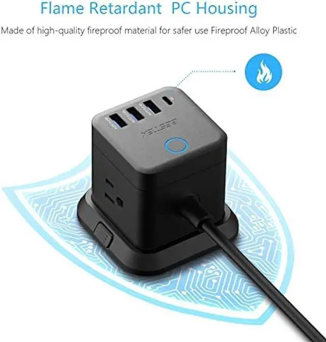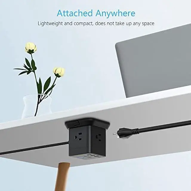 Space Saving Design: Our power strip is compact and portable, you can either use the screws or Glue (provided) to fix it on or under desks, wall or any other surface you want.