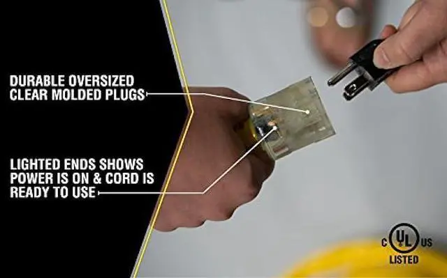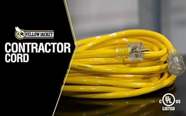 10 GAUGE; 3 prong contractor extension cord provides 15 Amps; 125 Volts and 1625 WattsUL Listed
